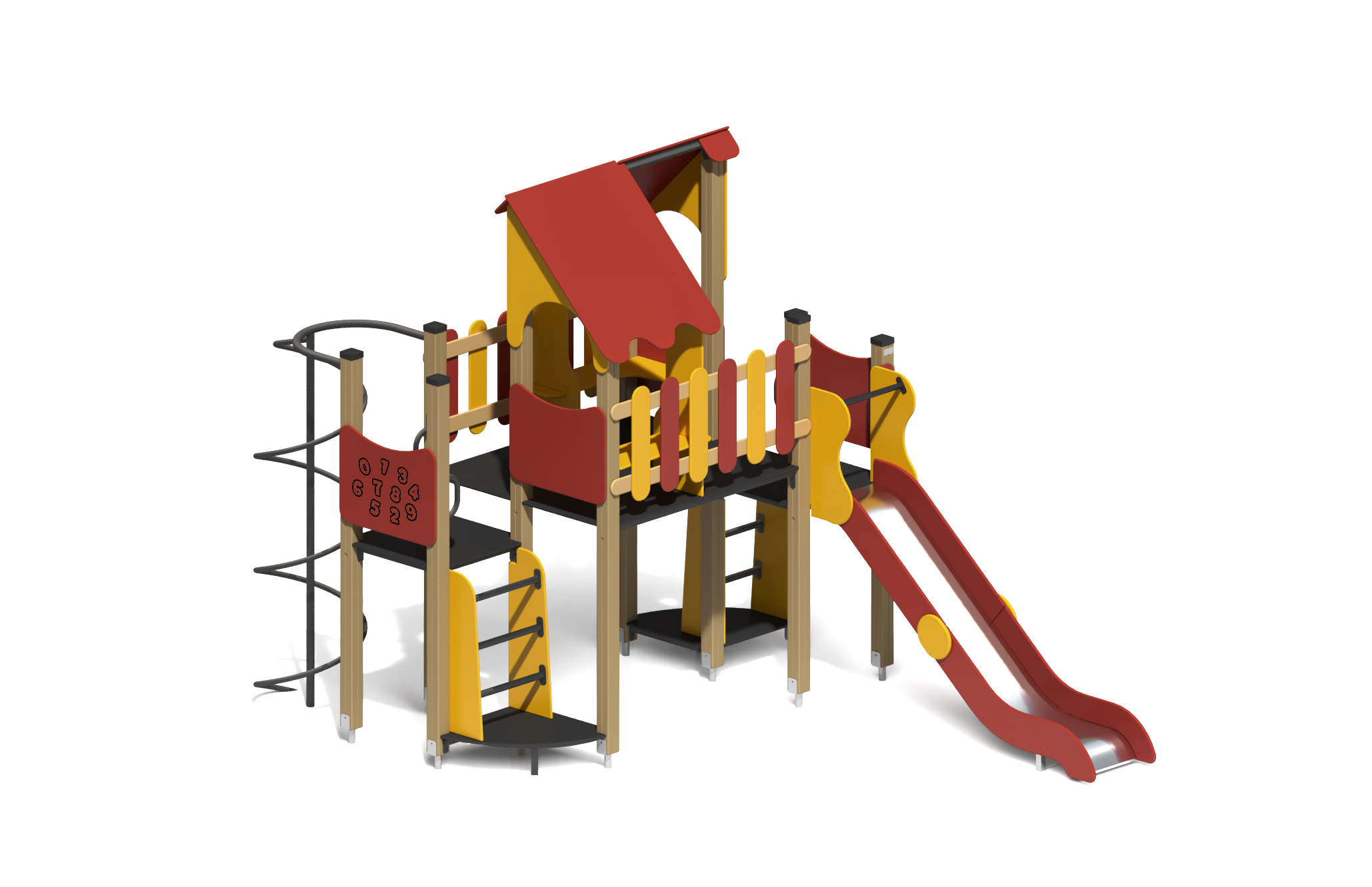 Надежный Игровой комплекс ИК-44.6 для детской площадки, способствует развитию координации движений и стимулирует воображение у детей.