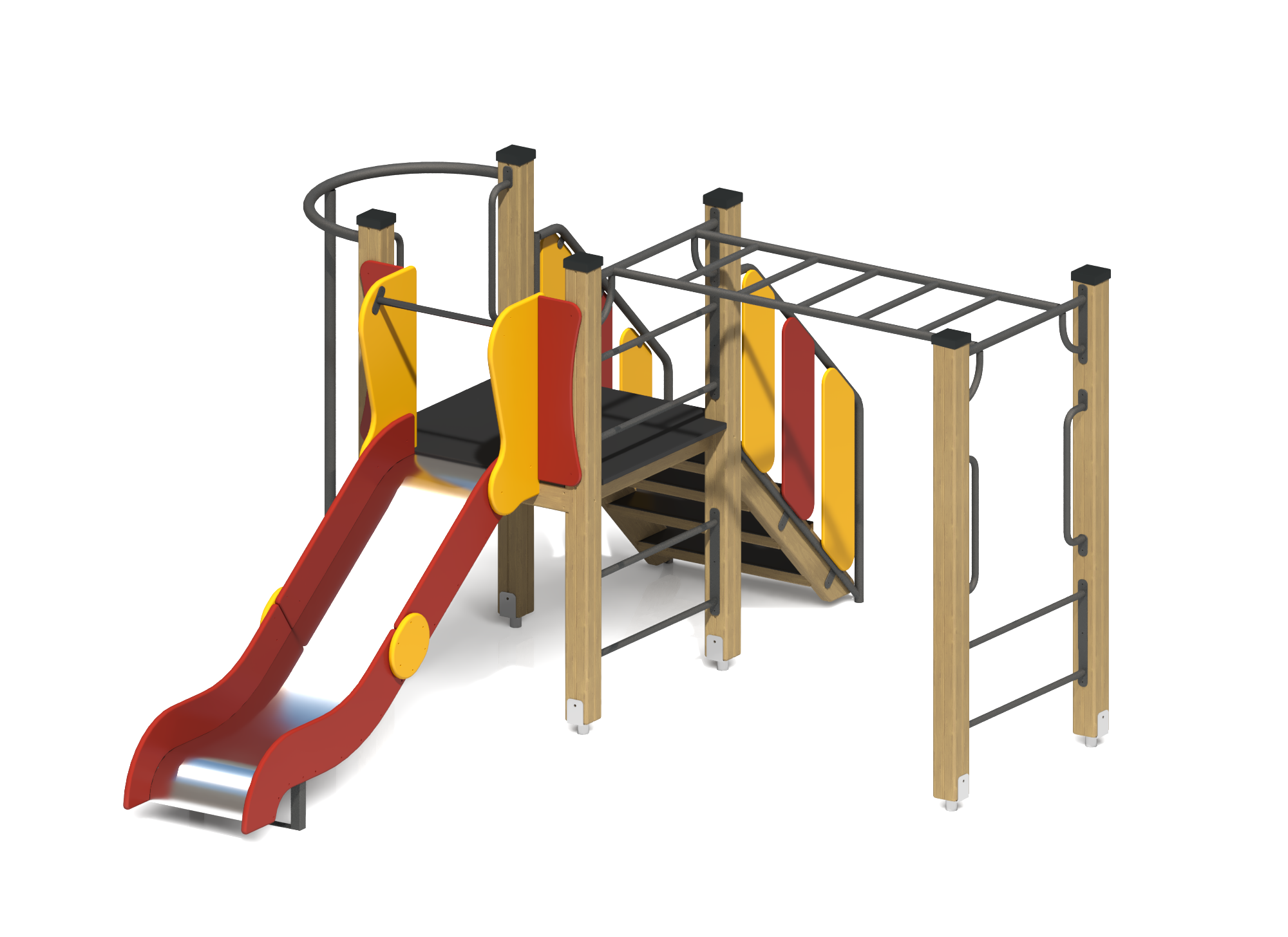 Многофункциональный Игровой комплекс с ламинированным полом Нгр=950 ИК-19, разработан с учетом потребностей детской площадки, безопасный и привлекательный для активного времяпровождения.