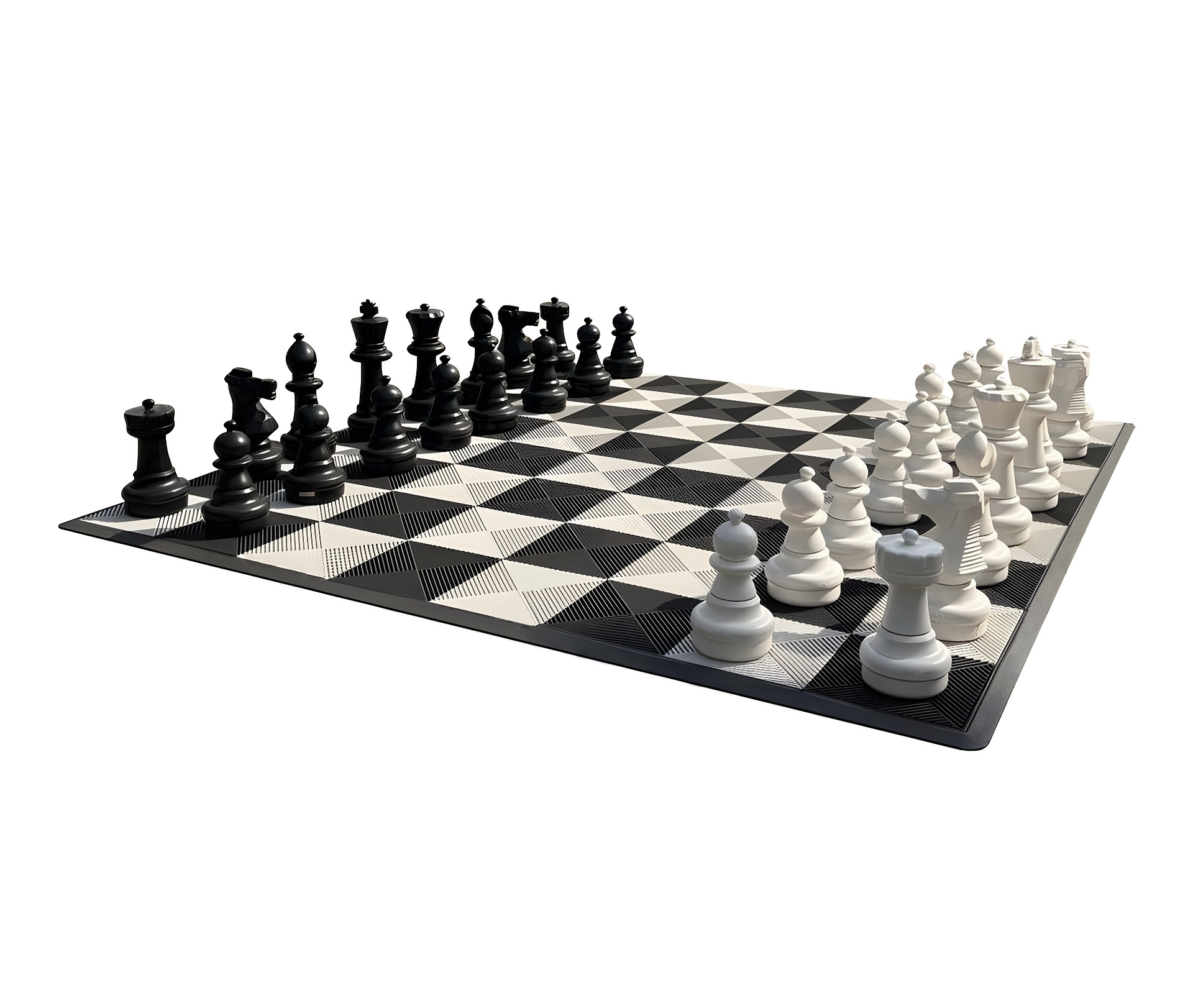 Фигуры не крашеные, а из цельно литого материала с уф-добавками для защиты от выгорания. Выдерживают отрицательные температуры и любые погодные условия. При падении не трескаются и не откалываются. Можно мыть любым моющим средством. Сильные загрязнения удаляются чистящими пастами для ухода за фаянсом и кафелем.\nШахматы-трансформеры 2 в 1: верхняя часть фигуры отворачивается, нижнюю часть можно использовать как «шашки». Для регулирования по весу в дно насыпается песок. Можно оставлять на улице зимой и летом, под дождём и снегом. Рекомендуются для использования в школах, детских садах, парках, во дворах и на площадках.