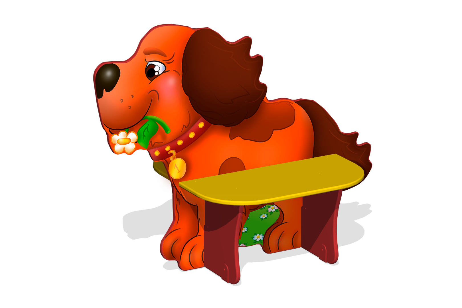 Лавочка детская двойная Щенок МФ-05.8 - милый дизайн и безопасные материалы для комфортного отдыха и игр на свежем воздухе. Закажите сейчас!